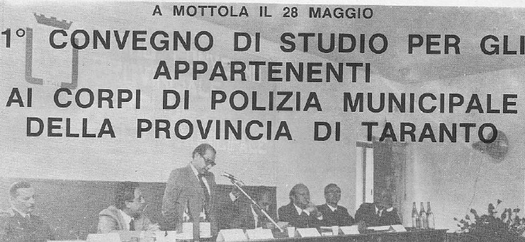 28/05/1982 MOTTOLA: I° CONVEGNO DI STUDI PER GLI APPARTENENTI AI CORPI DI POLIZIA MUNICIPALE DELLA PROVINCIA DI TARANTO - 28 MAGGIO 1982